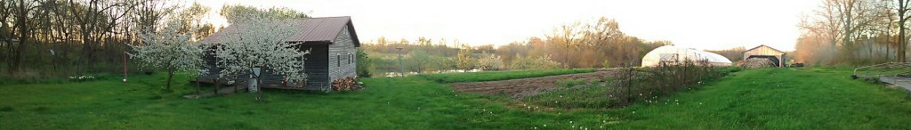 We are currently composed of 4 adults and 2 youth that live in three houses and a cabin. Many outbuildings, barns, and gardens support our work in tending the 168 acres of fields and forest in which we live.