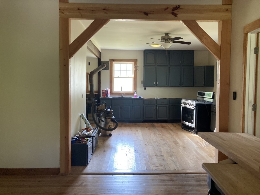 A 3-bedroom farmhouse with a fully functioning kitchen and bath. This home is freshly rehabbed, much with wood harvested, sawn, and dried from our land.